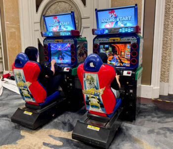 4-player versus & 3 single modes, 5 scenes, 17 tracks, and 64 stages. New combat mode! For single & multi-play, feel the competitive ” crashing” combat Vehicle Performance Upgrade! High-quality force feedback with new turning & N2O system.