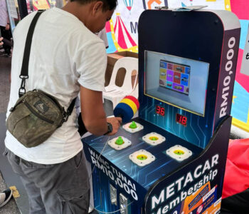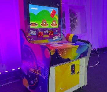 Unlimited promo video loop available for the 22″ digital screen and player will have to insert token to activate the machine, once the machine are activated. The machine will raise a mole randomly and player must use the mallet to hit the moles to score the points. Other than that, this whack a mole are built in-house in Artcage Rent Sdn. Bhd.