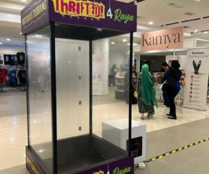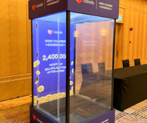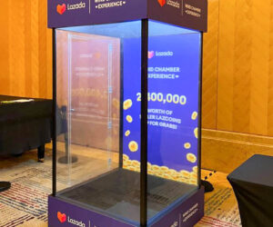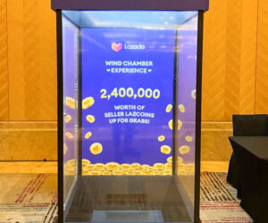 Only one participant is allowed to enter the box at a time. Each participant will be given a designated time to catch the vouchers or papers inside the machine.