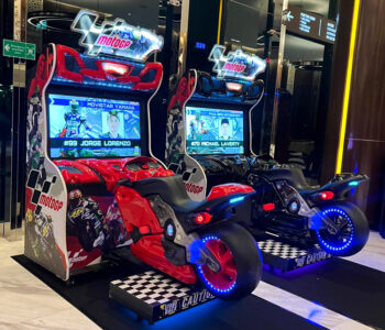 The official licensed MotoGP ™ motorcycle simulator arcade game with authentic “MotoGP-style” motorcycle mounts!
