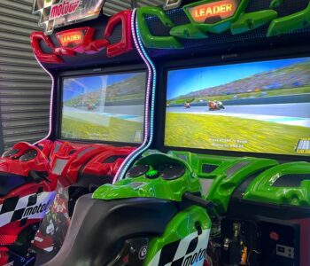 MotoGP ™ marks the first racing game effort by arcade development powerhouse Play Mechanix (Big Buck Hunter, Aliens Armageddon, Terminator Salvation, etc.) after years of light-gun and redemption game creation. MotoGP rises above other motorcycle racing games on the market by providing a more realistic take on racing. This includes three (3) difficulty levels – Novice, Normal and Pro – which adjust the physics and the handling of the bikes from more arcade style towards more simulator style. Authentic MotoGP racing courses have been carefully recreated for this game and is enhanced by the bike controllers that the player swivels on to hug those many turns.